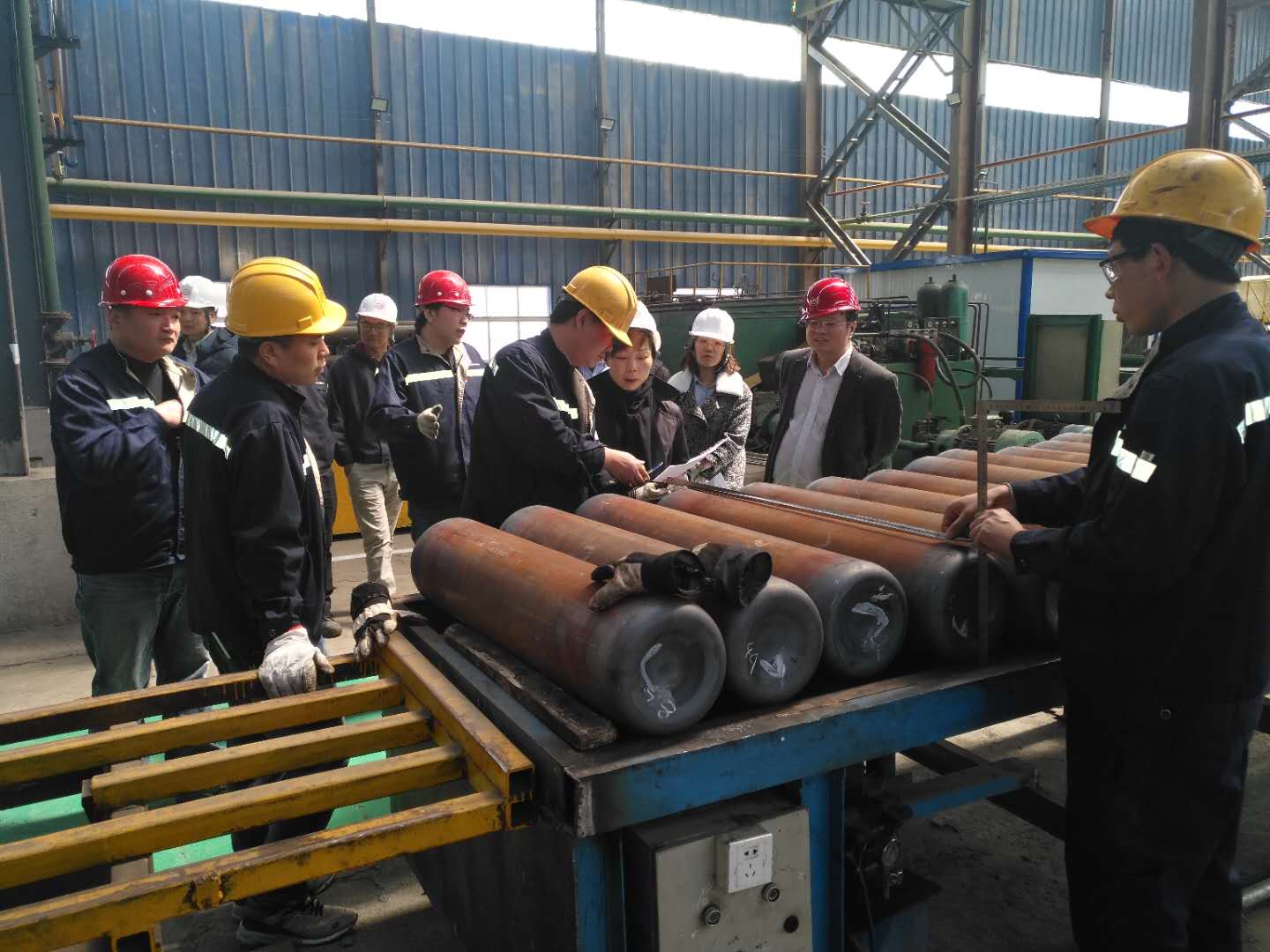 AP公司專家就寬城天海生產(chǎn)的的產(chǎn)品規(guī)格、技術(shù)參數(shù)、工藝指標(biāo)做了詳細(xì)的了解,并就產(chǎn)品的型式實驗、取證和投產(chǎn)等工作的時間線達(dá)成初步共識。隨后專家組一行參觀了寬城天海沖拔瓶車間、管制瓶車間和冷加工車間。