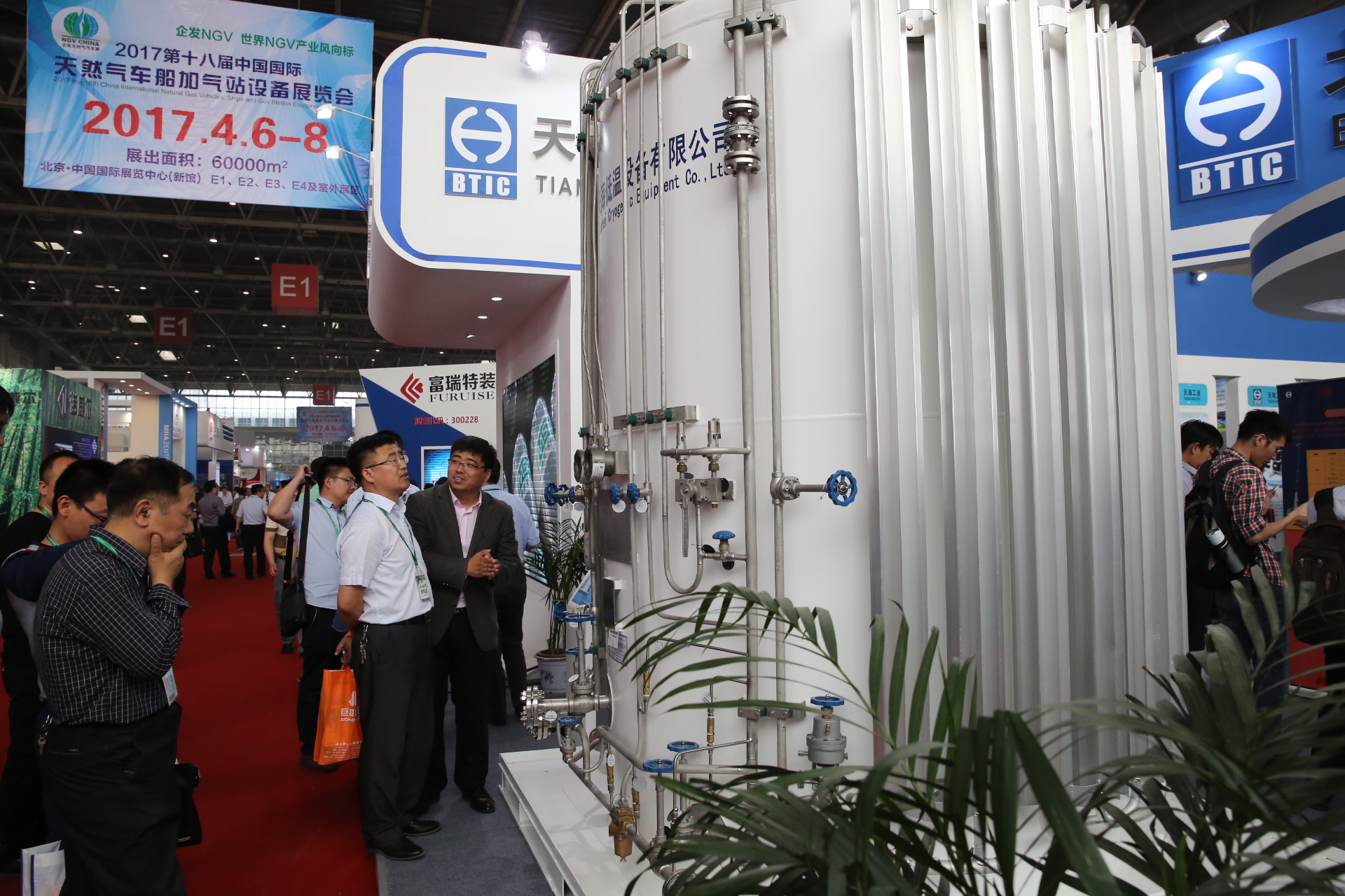 天海工業(yè)秉承高效、環(huán)保、節(jié)能的理念,致力于推動清潔能源燃料系統的發(fā)展,提供天然氣儲運領域全套解決方案。此次展會,不僅展出了公司全新研制的車用壓縮天然氣鋁內膽碳纖維全纏繞復合氣瓶(CNG-3型瓶)、車用壓縮氫氣鋁內膽碳纖維全纏繞復合氣瓶(CNG-3型瓶),還有公司最新研發(fā)的具有國內先進技術的LPP型車用LNG氣瓶以及大直徑車用LNG氣瓶,更有應用于定檢站維修站應用的真空降級維修設備、小型汽化站系統以及加氣站物聯網系統等多種全新產品。此外通過循環(huán)播放公司宣傳片及精心設計的30多塊展板全面展示了公司在天然氣儲運領域所能提供的系列產品及服務。
